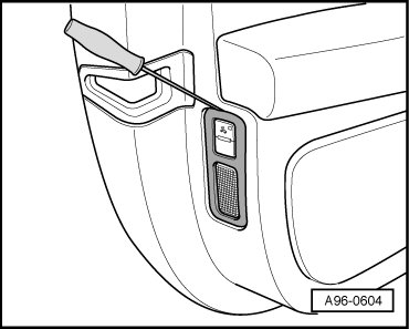 - Carefully unfasten and press button - 2 - to rear out of trim panel - 1 -.