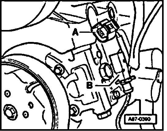 - Use adapter cable from adapter set V.A.G 1594 A to re-establish connection between connector -A- and connector -B- at regulating valve.