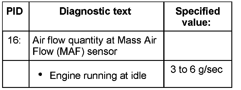 - Select the measuring value "PID 16: Air flow quantity at Mass Air Flow (MAF) sensor".