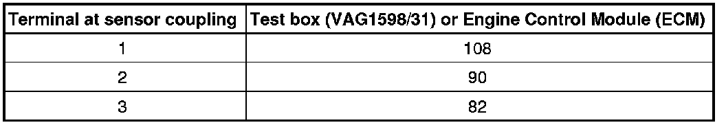- Connect test box (VAG1598/31) to wiring harness of Engine Control Module (ECM), refer to Repair Information.