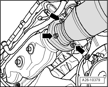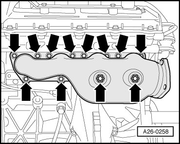 - Remove the exhaust manifold bolts - arrows -.