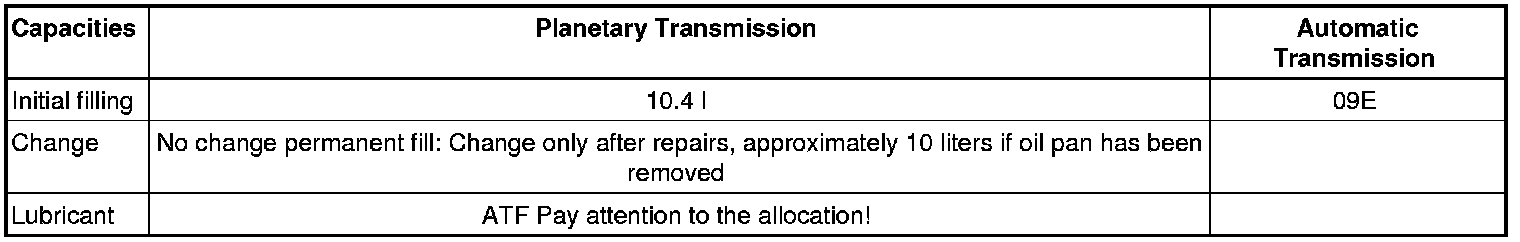 • Only use the ATF available as a replacement part for the planetary gear in automatic transmission 09E.