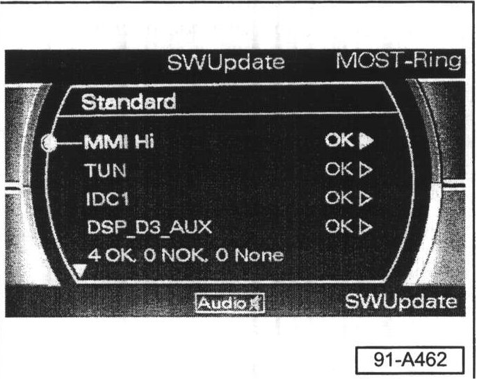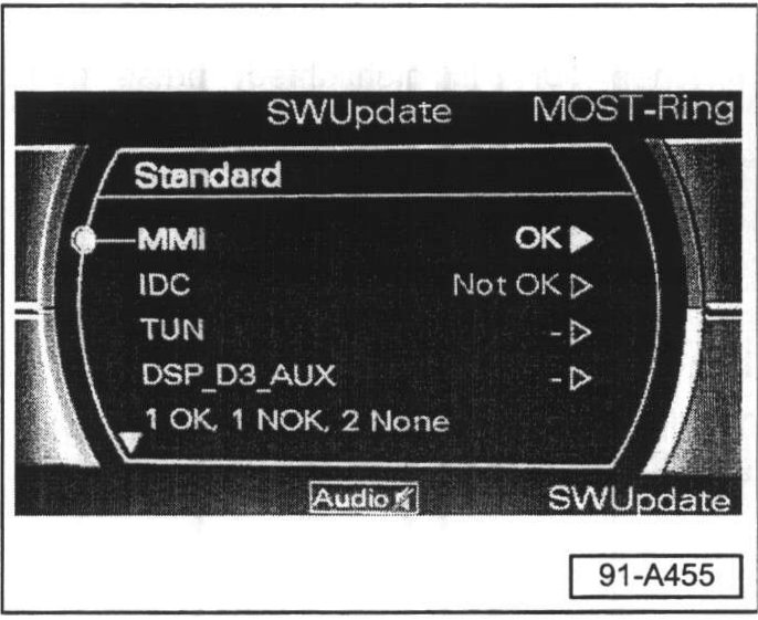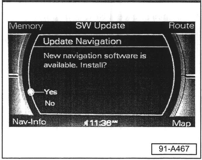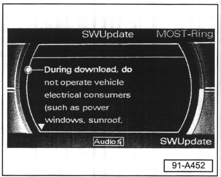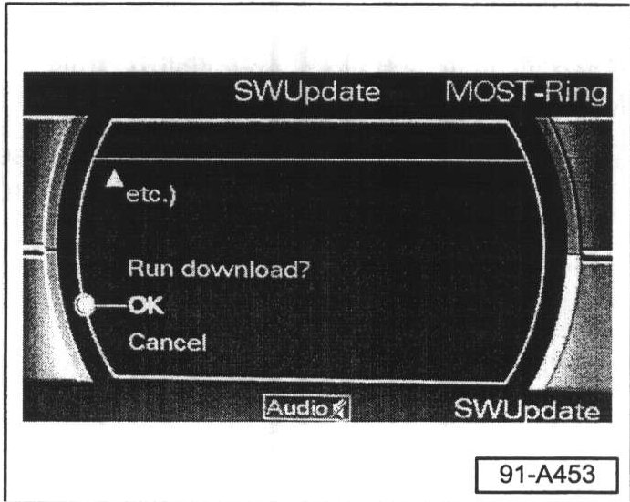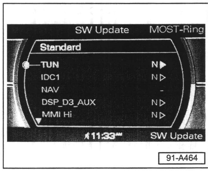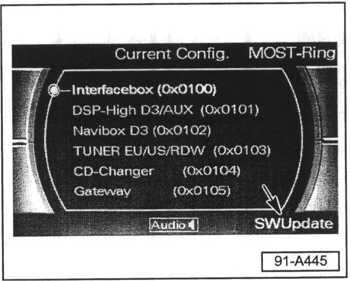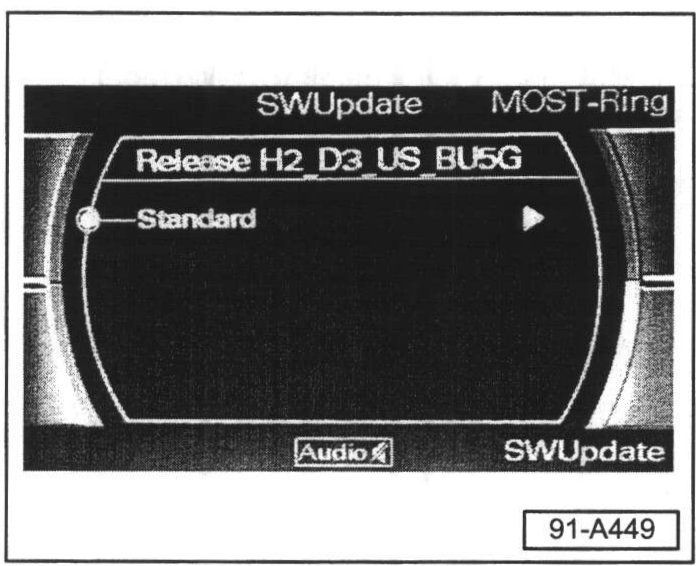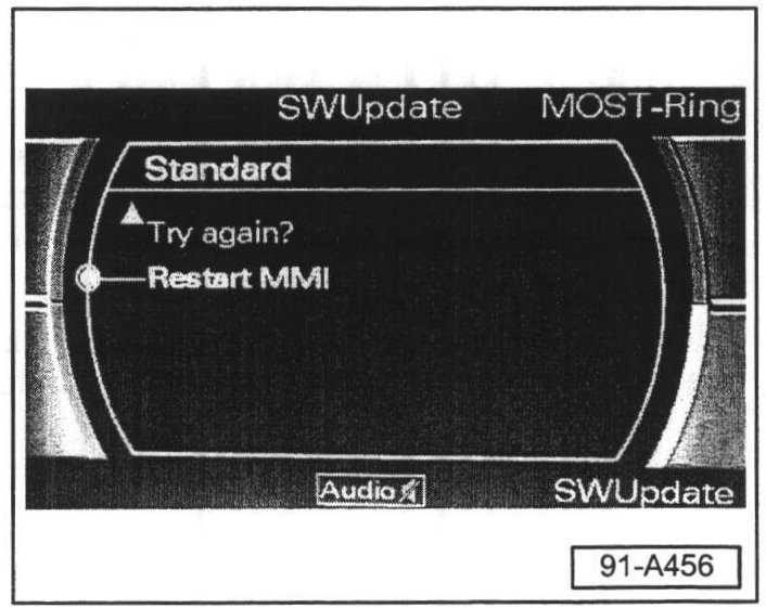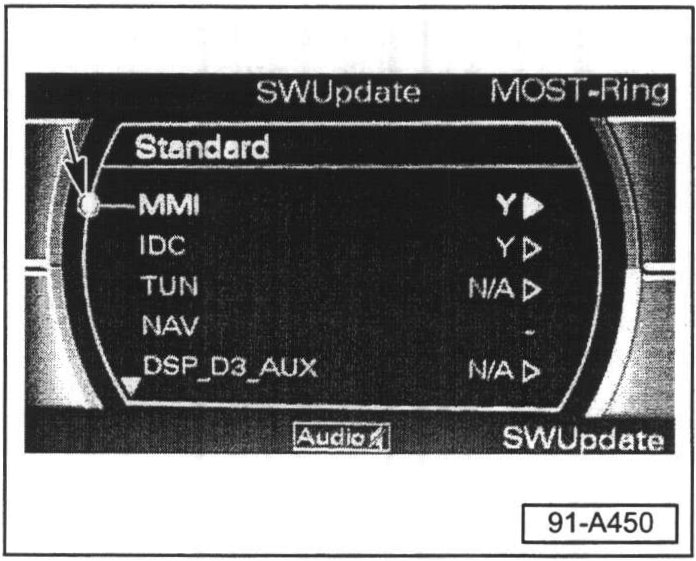 - MMI screen will display "SWUpdate" in lower right corner -arrow-.