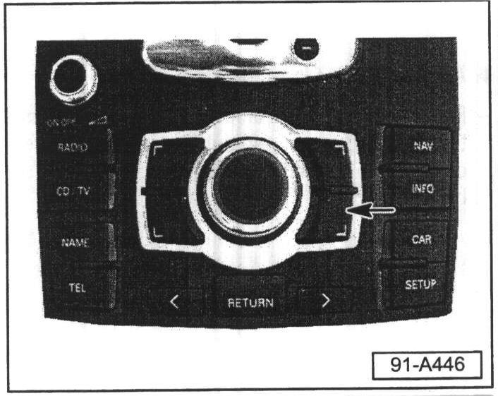 - Rotate center control knob counterclockwise to move cursor on MMI screen downward until "OK" is highlighted.