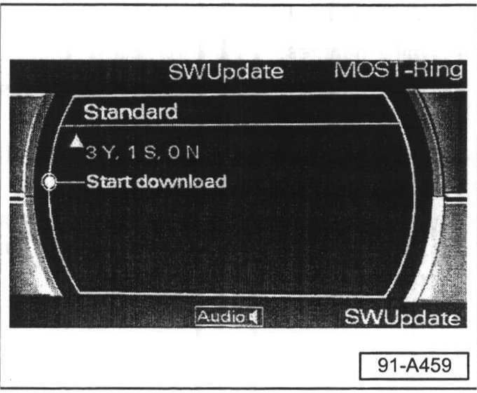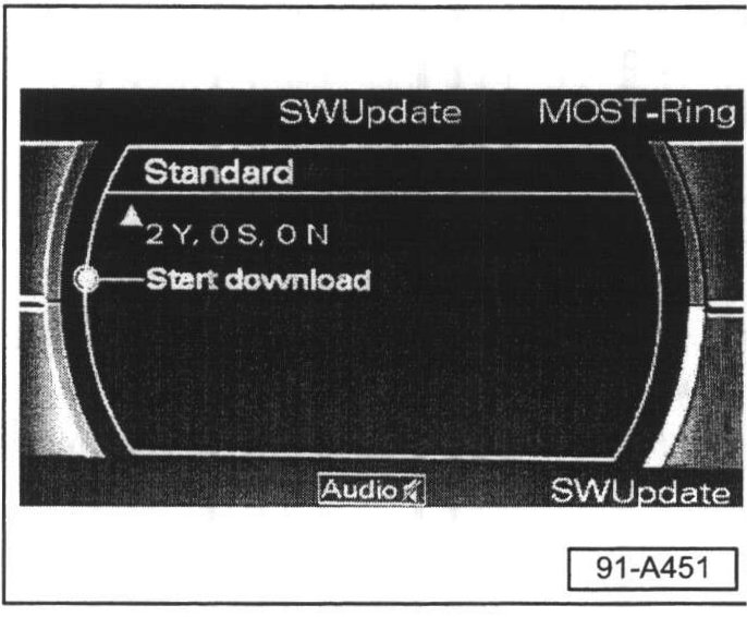 - Rotate center control knob counterclockwise to move cursor -arrow- on MMI screen downward until "Start download" is highlighted.