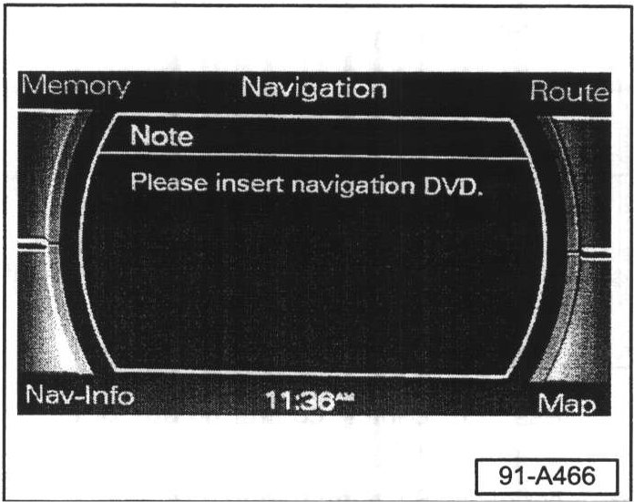 - Wait until message "Insert Navigation DVD" is displayed on MMI screen