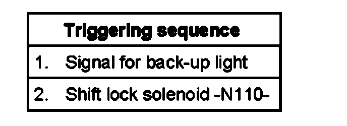 ^ The shift lock solenoid -N110- is triggered at intervals for about 1 minute (clicks) unless actuator diagnosis is terminated by touching the (arrow) button.