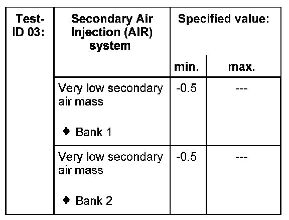 - Select the measuring value "Test-ID 03: Secondary Air Injection (AIR) system" and check whether the specified values are being reached, Diagnostic mode 6: Check test results of components that are not continuously monitored Diagnostic Mode 6: Check Test of Parts Not Constantly Monitored