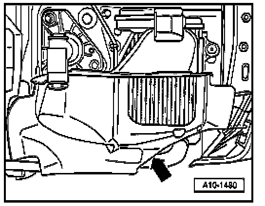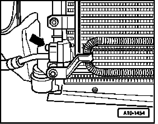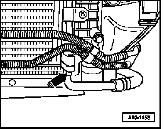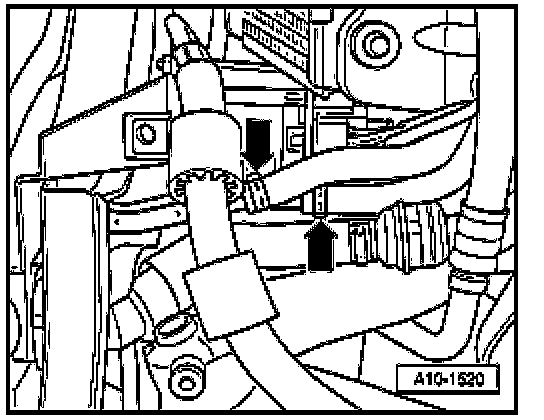- Remove coolant hose at bottom of radiator - arrow - and drain off remaining coolant.