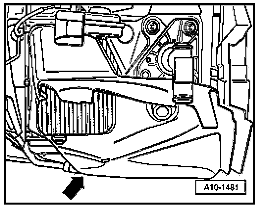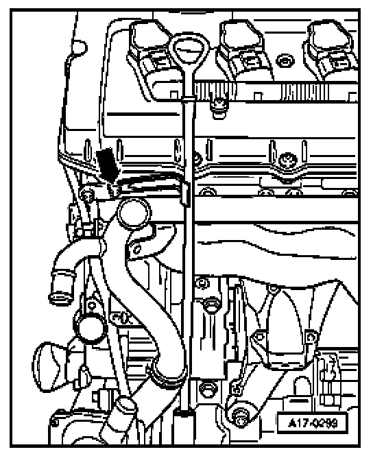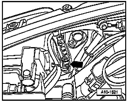 - Unbolt guide tube for dipstick at cylinder head - arrow - and lift it off.