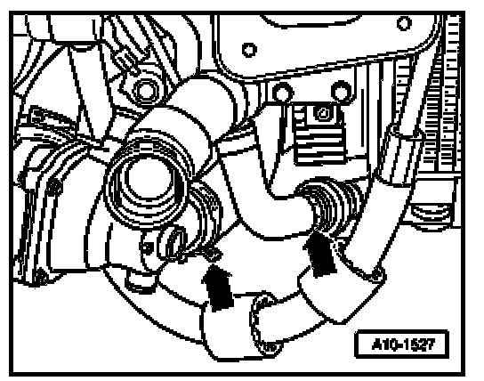- Remove coolant hoses at locations marked with arrows.