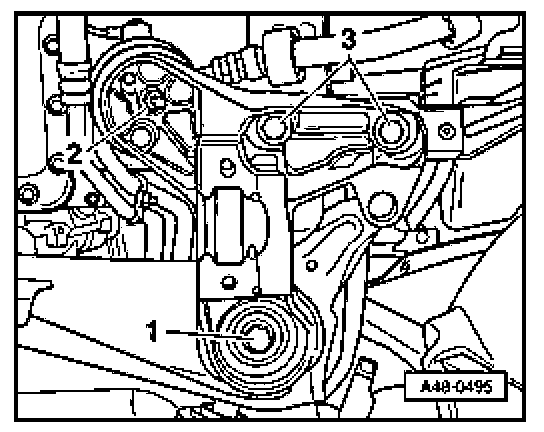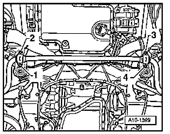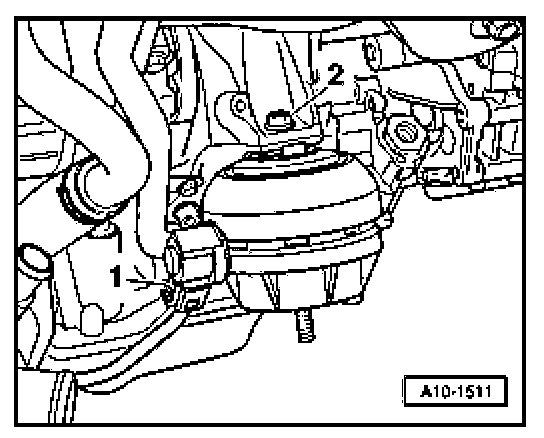 - Unbolt nut - 2 - and remove engine mounting.