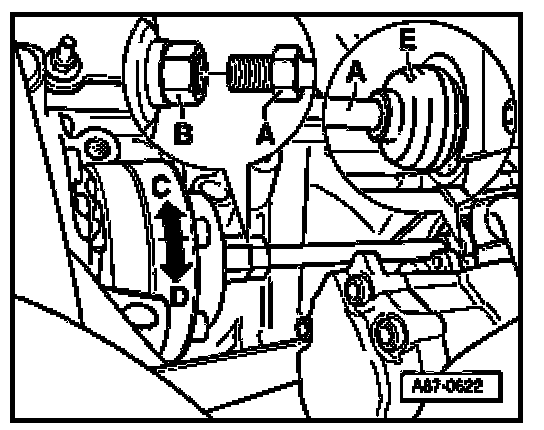 - After installing drive shaft -A-, check installation position of socket - E-.