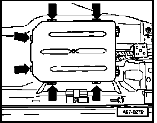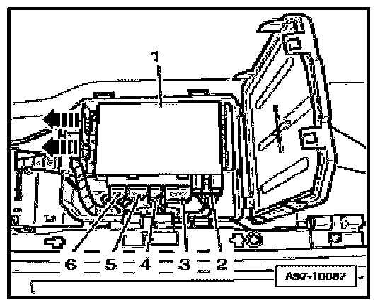 - Release retaining clips - arrows - and remove Comfort System Central Control Module J393 -1 - from electronics box.