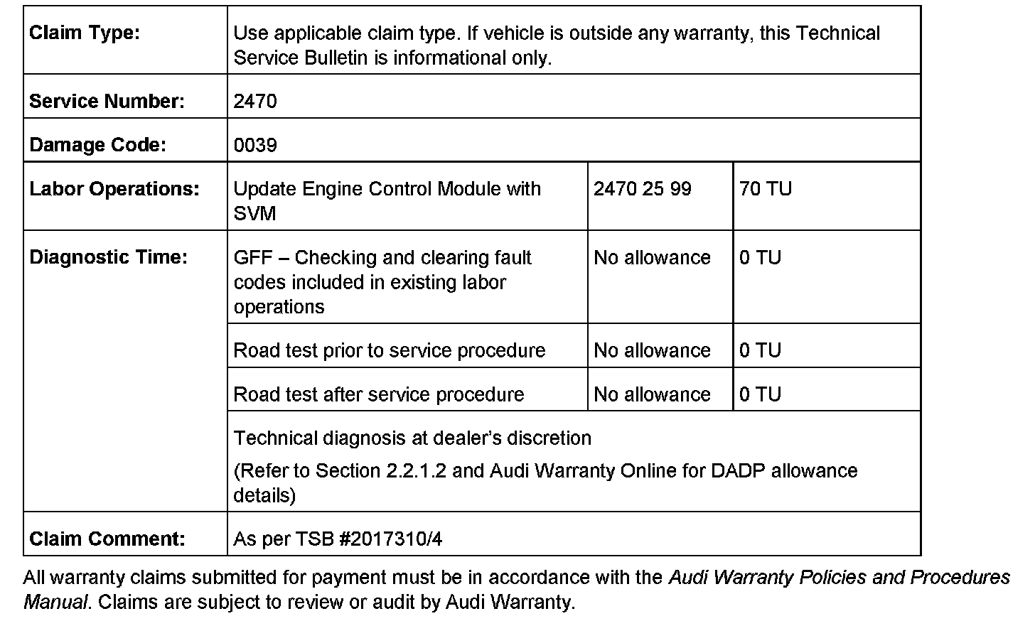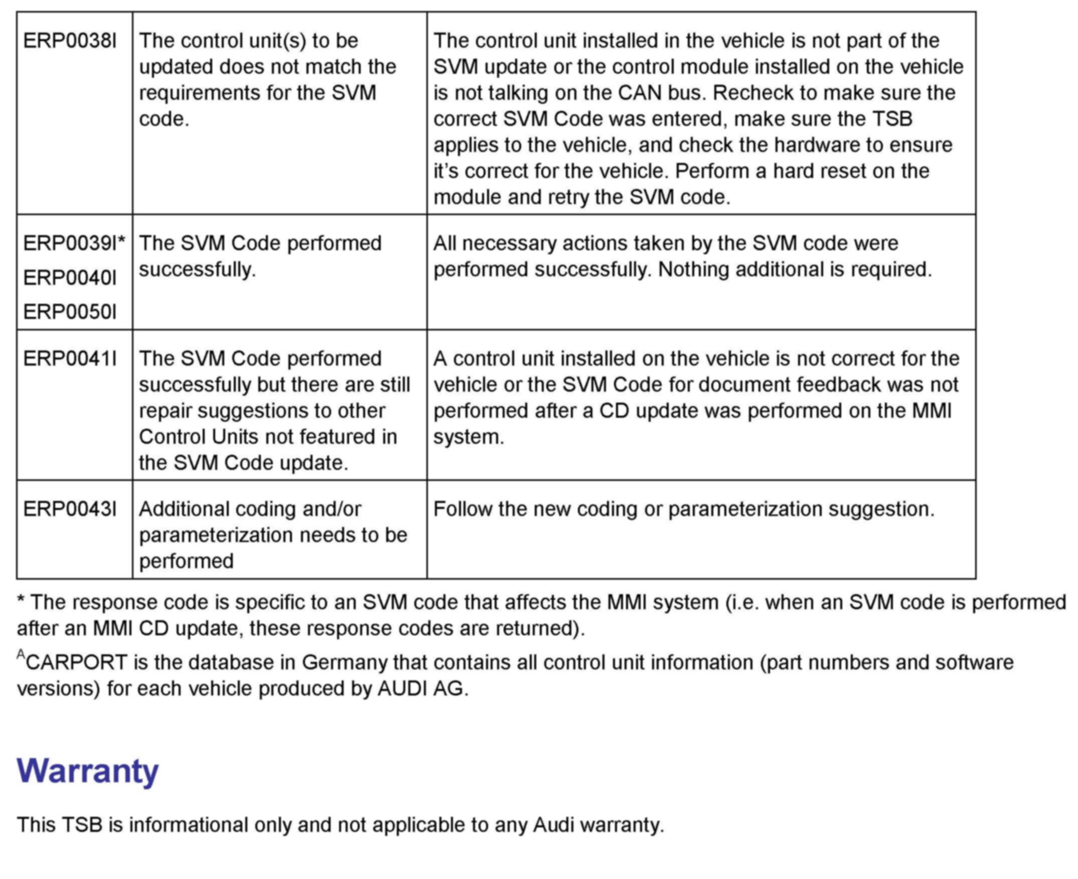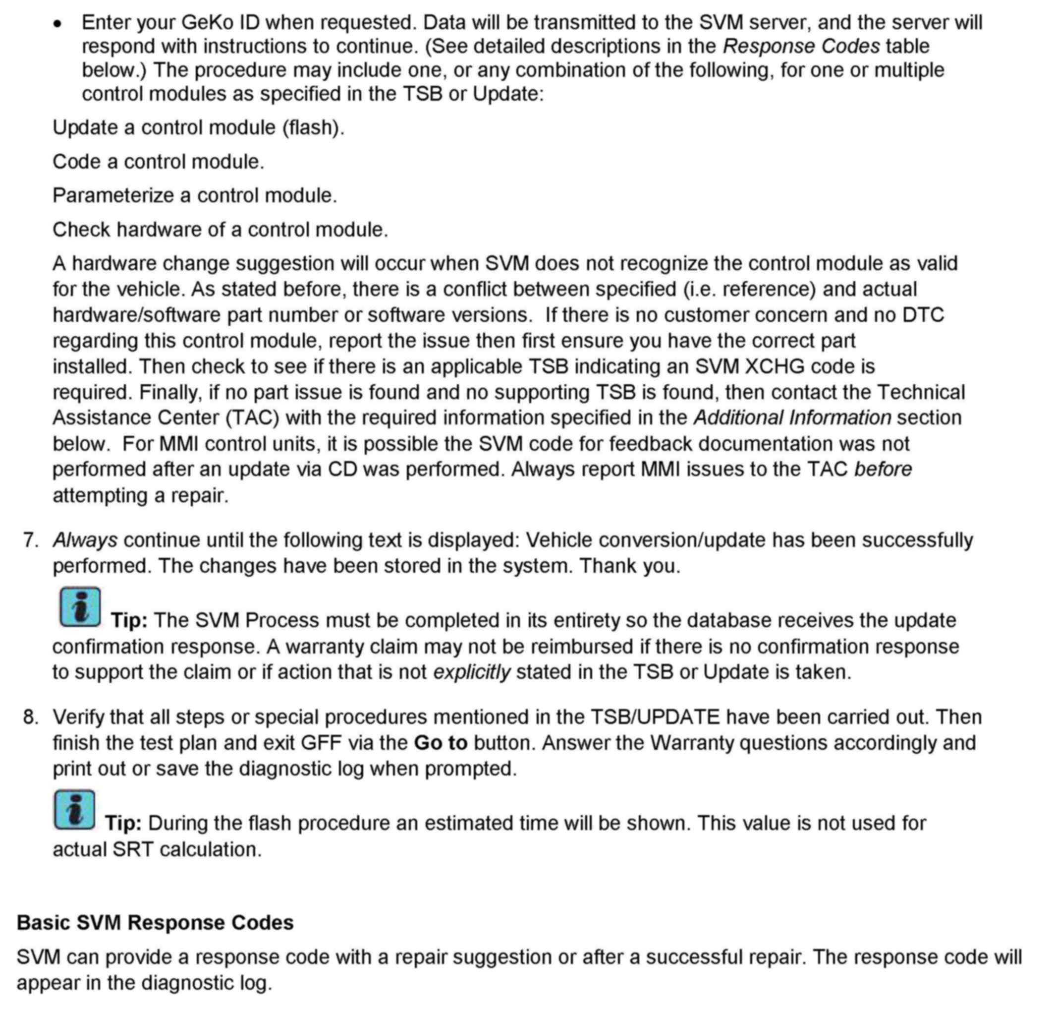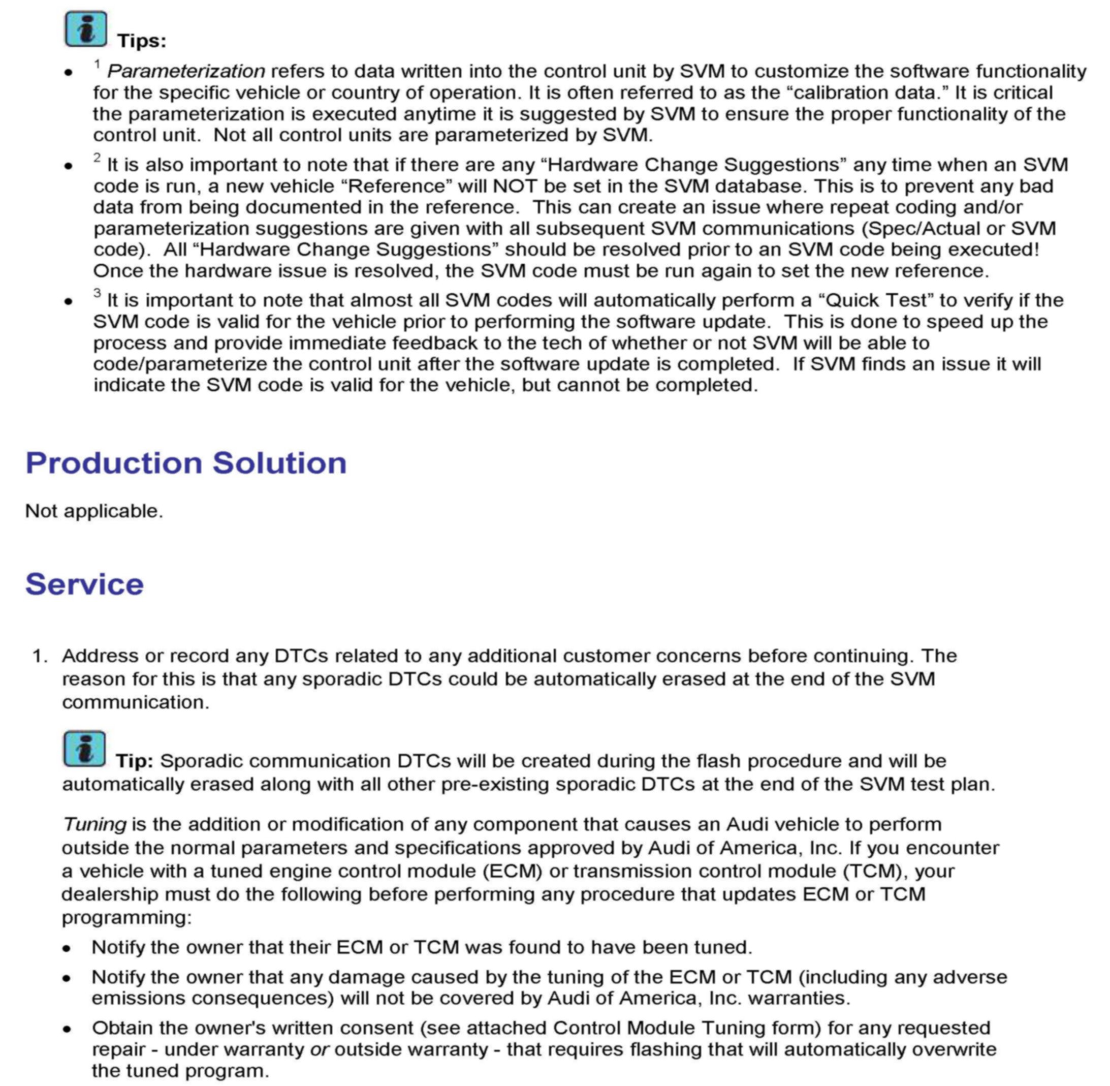 2. Update the ECM (J623) using the SVM action code as listed in the table above if necessary.