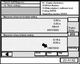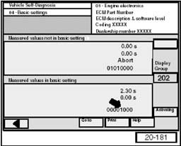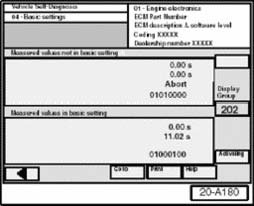 For some vehicles using Display group 202 a similar screen appears indicating"Test Off".