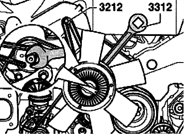- Counter-hold pulley for viscous fan with pin wrench 3212 and remove fan with wrench 3312 (left hand thread).