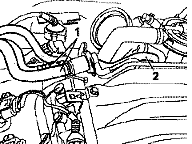- Remove hose -2- and move it aside.