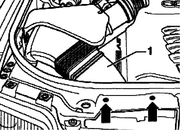 - Remove bolt -arrow- and remove air cleaner housing together with mass air flow sensor and air intake duct.