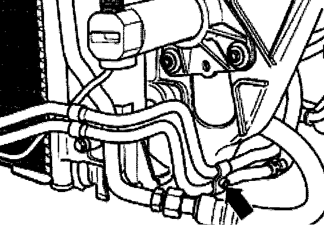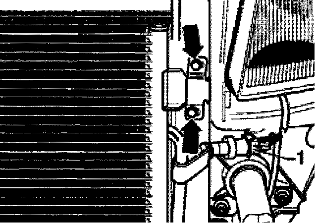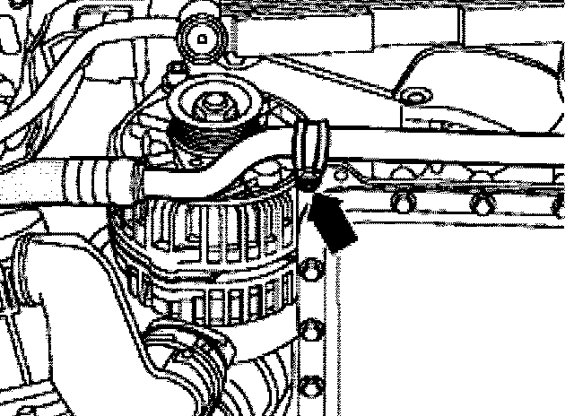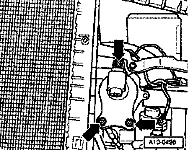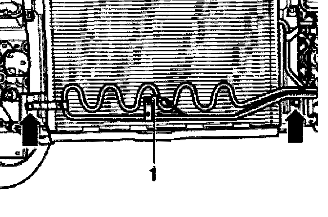 - Remove coolant hose at upper right radiator -arrow-.