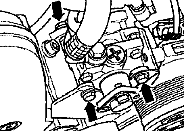 - Remove exhaust pipe bolts -arrows- at left from below.