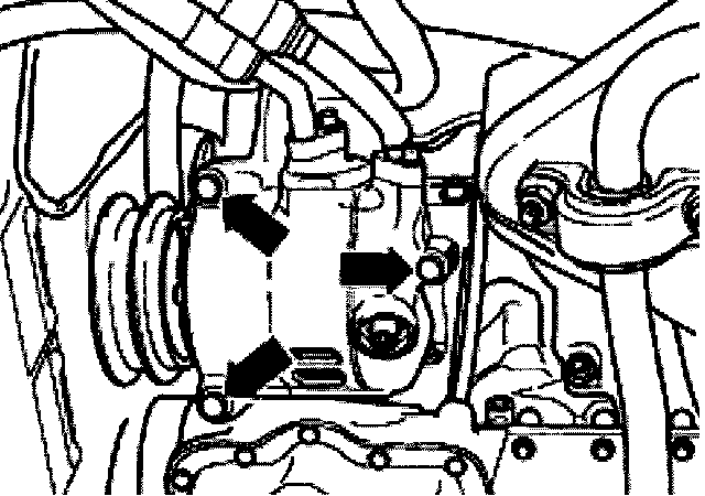 - Remove A/C compressor and hang up with wire. Watch out for centering dowels to locate A/C compressor on bracket.