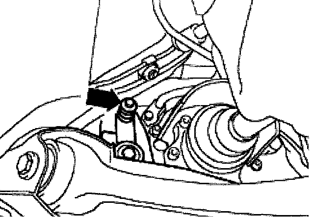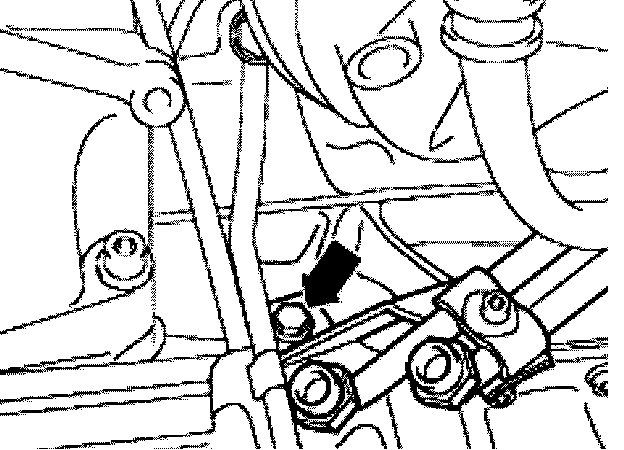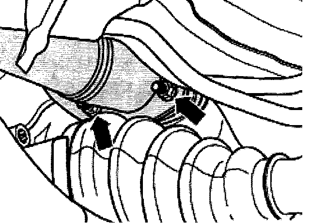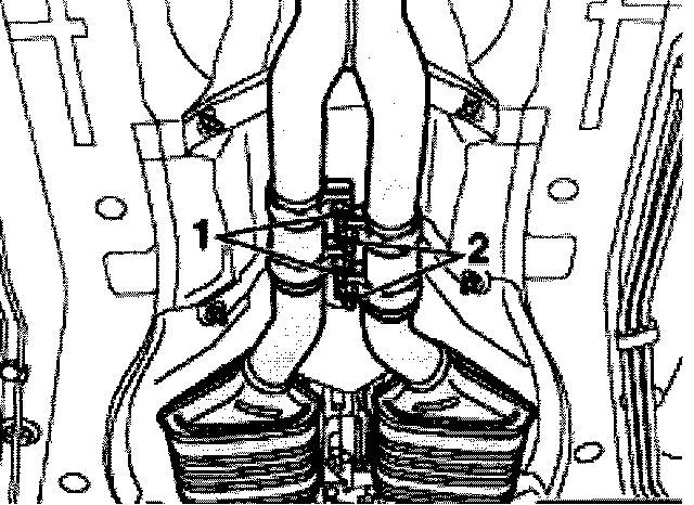 - From below, remove bolts-arrow between exhaust pipe and exhaust manifold.