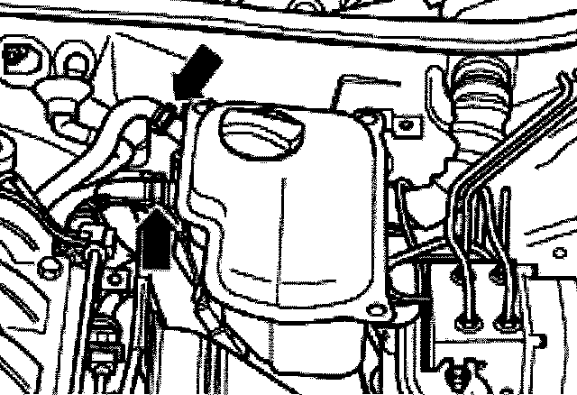 - Remove hoses -arrows- from coolant expansion tank