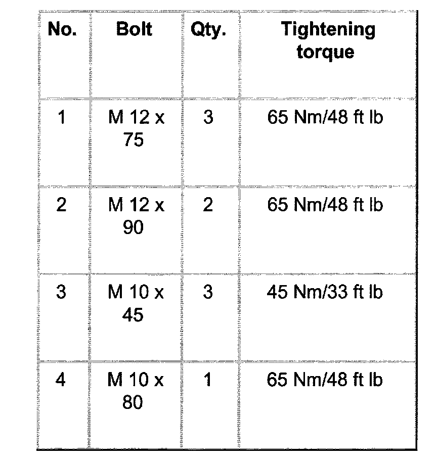 Tightening torques