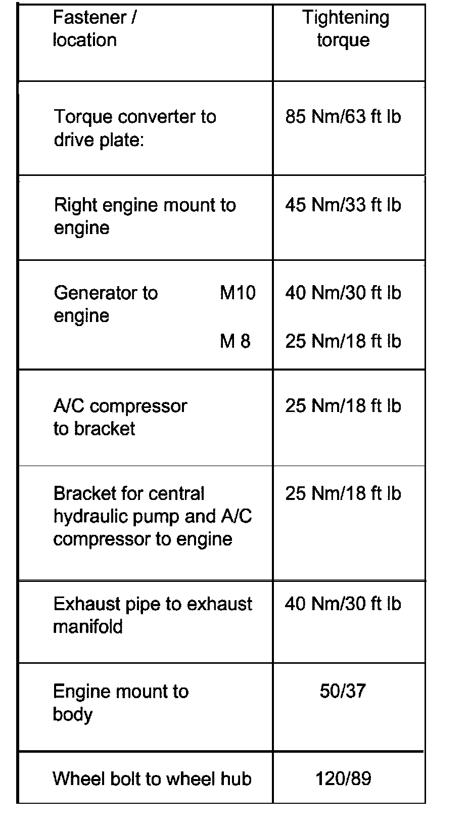 Engine Mount To Body 50 Nm (37 ft. lbs.)