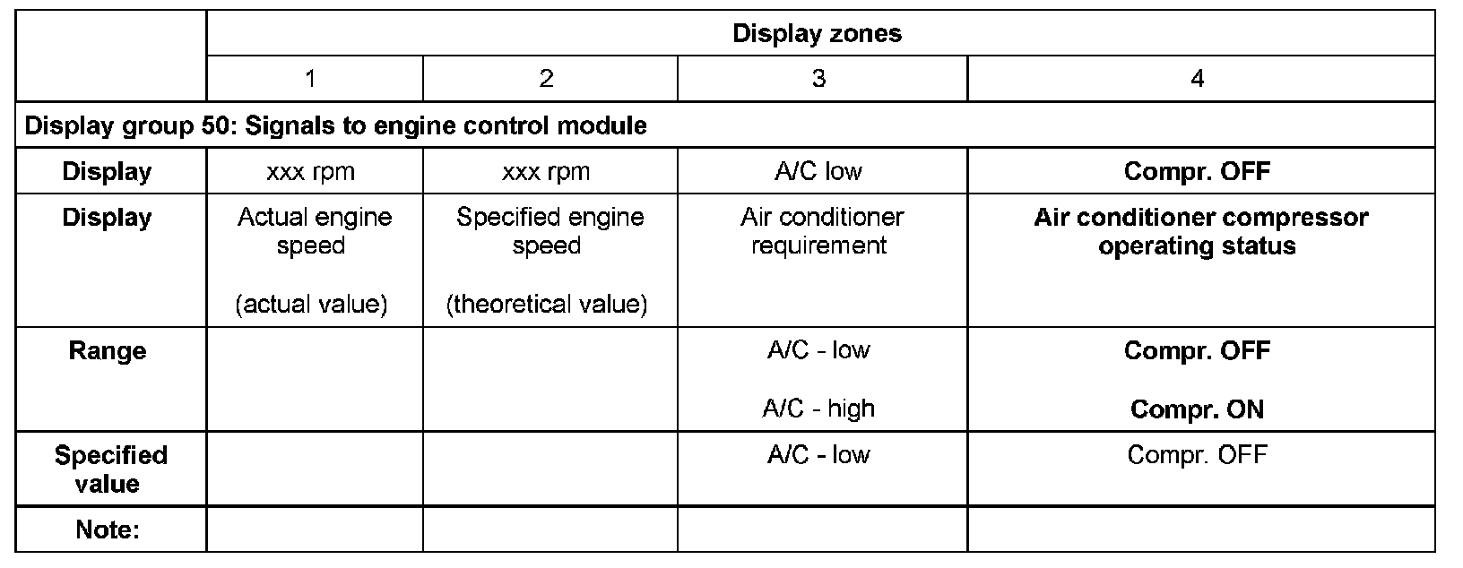 - The air conditioning compressor signal informs the engine control module that the compressor will be switched on in 140 ms.