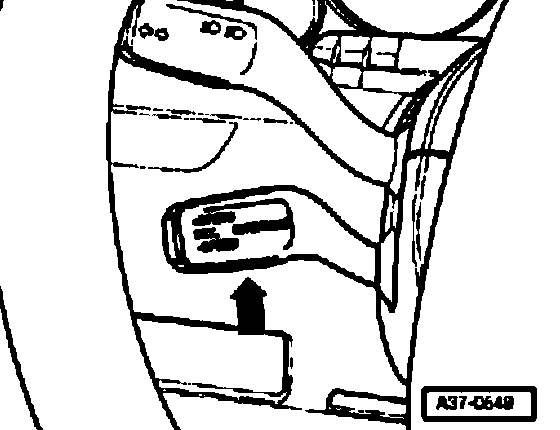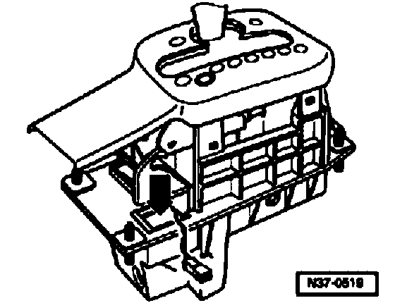 Component location: The shift lock solenoid is located in the shift control mechanism -arrow-.