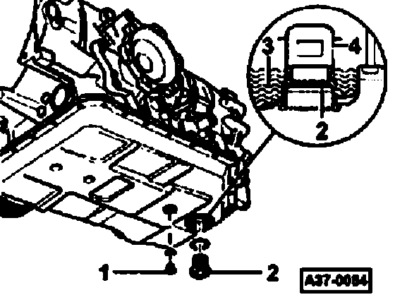 ^ If ATF-temperature reaches 30°C (86°F) , remove ATF-plug -2- and if necessary drain excess ATF.