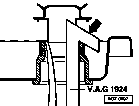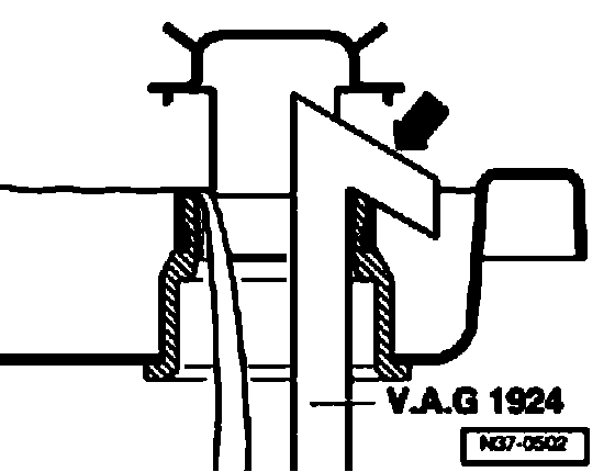 ^ Hang filling hook of VAG 1924 into test plug opening, item 2-.