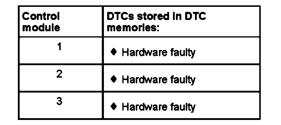 Disconnect each of the control modules connected via the bus wires one at a time and check whether the malfunction "Hardware faulty" is eliminated.