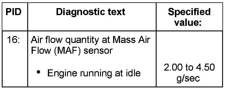 - Select the measuring value "PID 16: Air flow quantity at Mass Air Flow (MAF) sensor".
