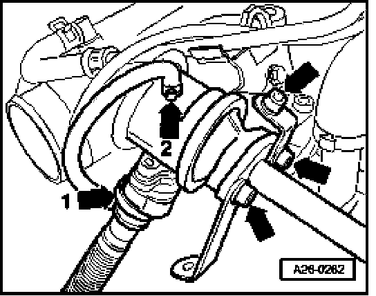 - Remove vacuum hose -1- and connection pipe -2- at combination valve.