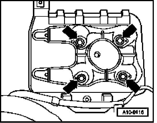 - Remove bolts -arrows- and bolt for air cleaner housing on battery mounting platform.