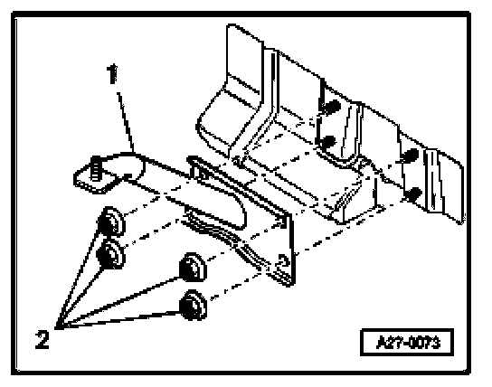 - Remove combi-bolts -1- and -2-. Tightening torque: 65 Nm