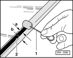 - When reusing an undamaged window, cut back remaining adhesive sealing material on the windshield glass and body flange until it is even using electric cutter V.A.G 1561 and scraper V.A.G 1561/10. Do not remove adhesive sealing material completely.