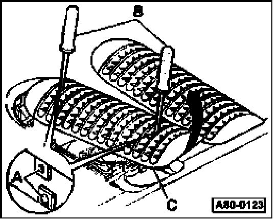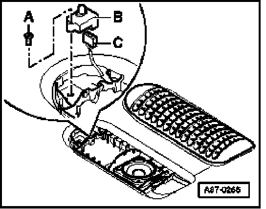 - Remove vent -C- in direction of -arrow- as illustrated.