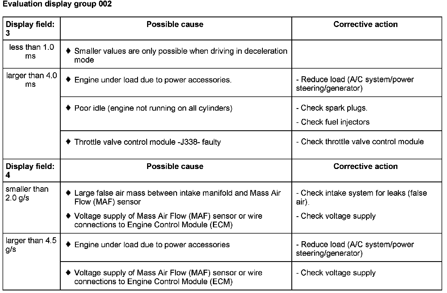- Fuse for Mass Air Flow (MAF) sensor OK.