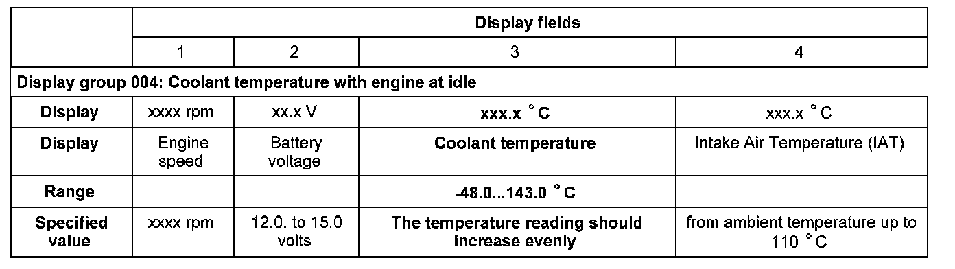 - Check Engine Coolant Temperature (ECT) sensor -G62- in display field -3-.