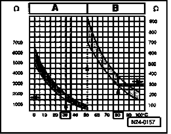 Range A shows resistance values for temperature range from 0 to 50 degree C, and range B shows values for temperature range from 50-100 degree C.