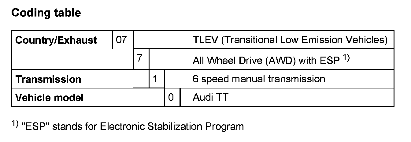 Engine Control Module, Coding Variables (Function 07)