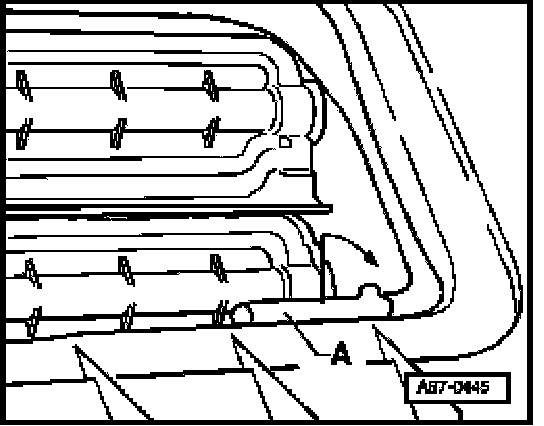 - Reach between air conditioner and bottom panel of plenum chamber, grasp hold of temperature sensor - A - and give it an approx. 90 degrees turn in direction of arrow.