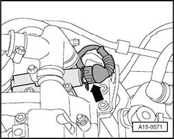 - Disconnect connector (arrow) at camshaft adjuster.