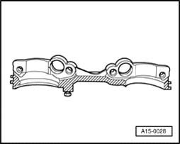 - Apply thin coat of sealant AMV 188 001 02 to shaded area on double bearing cap and install bearing cap (watch position of dowel sleeves).