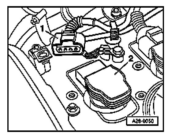 - Disconnect the 4-pin harness connector -1- at one ignition coil -2-.