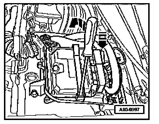 - Pry off Engine Control Module (ECM) retaining bracket (arrows) using a screwdriver and set control module aside.